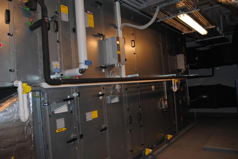 Jeweils getrennte Lüftungsgeräte. Luftführung in der Küche über Lüftungsdecke.